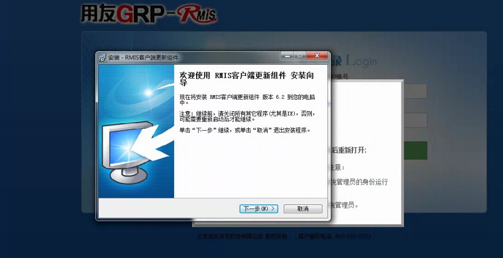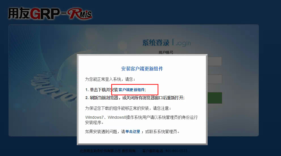 1、第一次登录系统时,请根据提示自行安装系统组件。