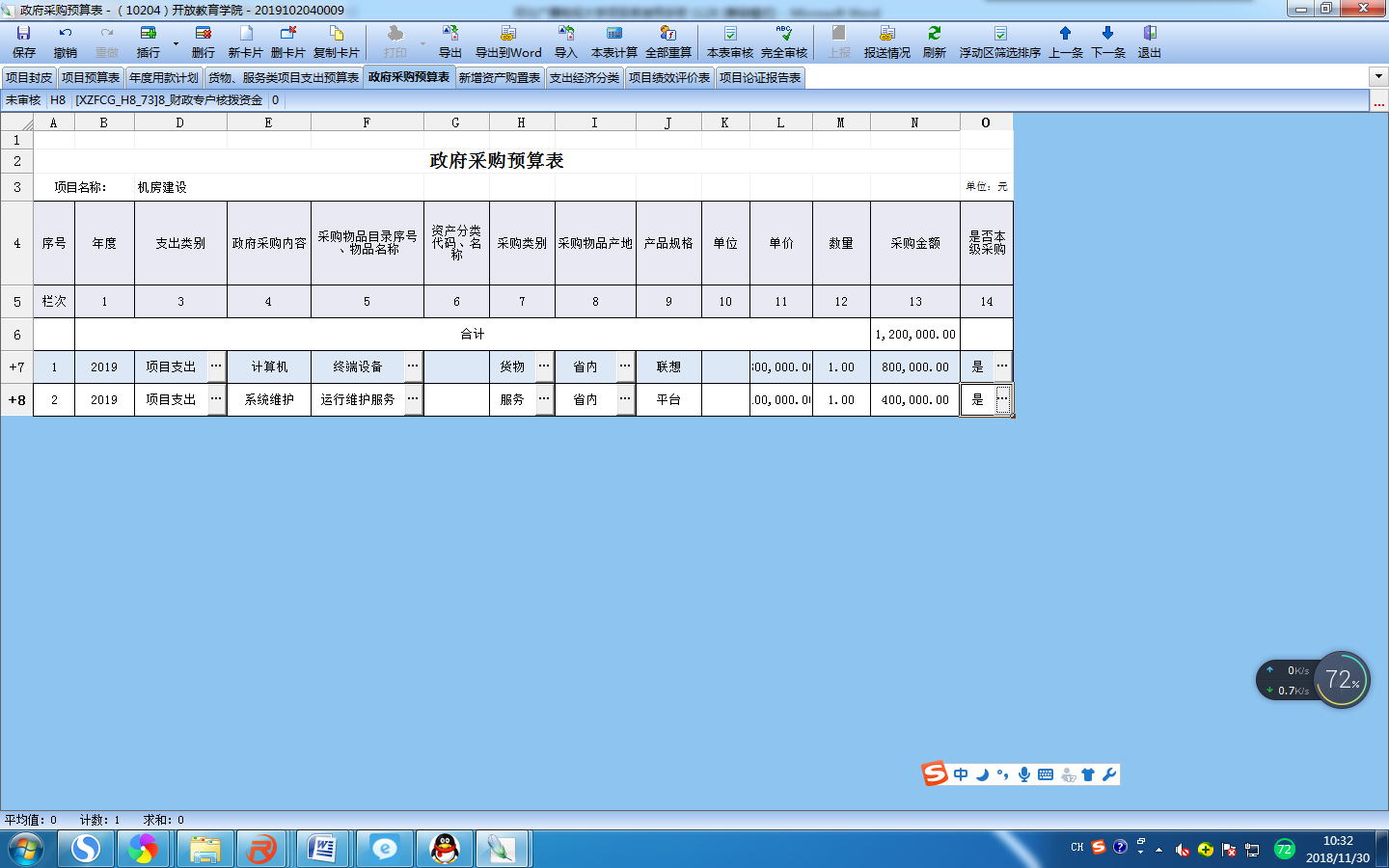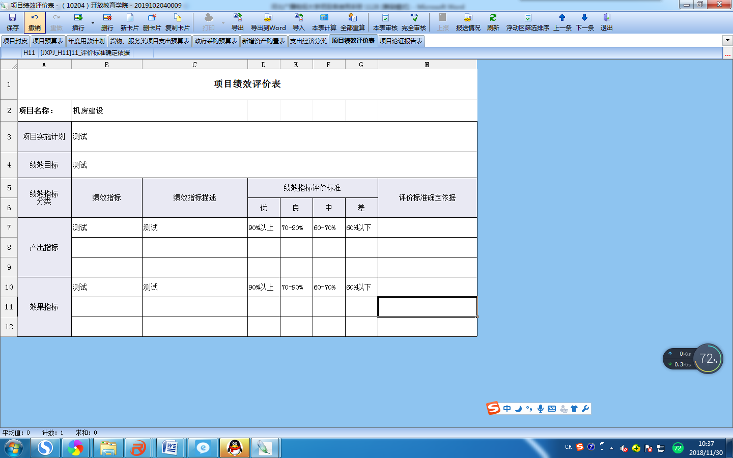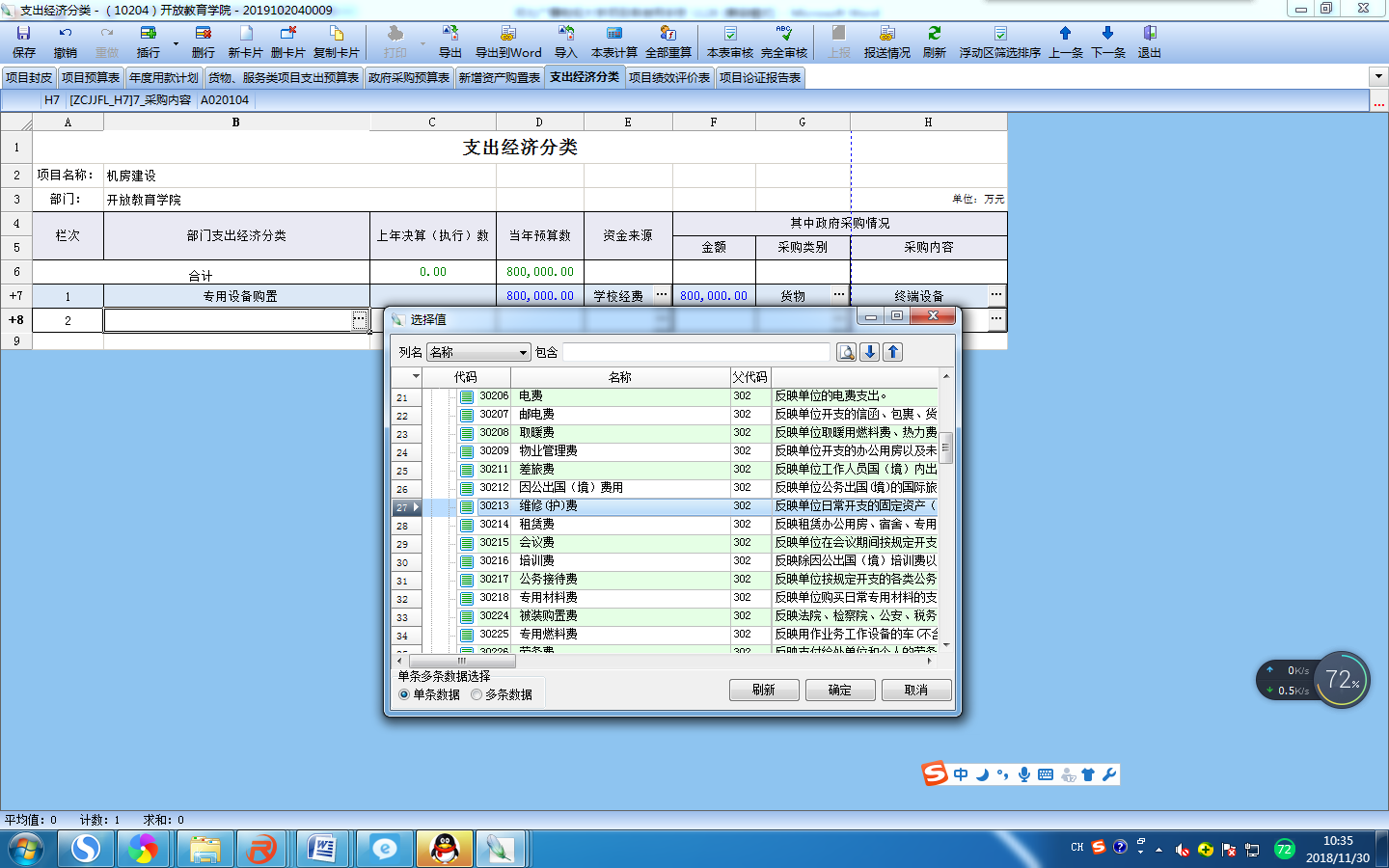 选择对应的归口部门和归口项目,填写完成后保存,软件会自动显示所需填写的辅助表。(项目编码保存后自动生成)
