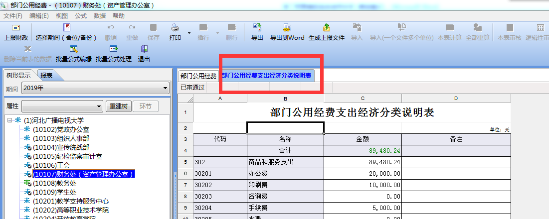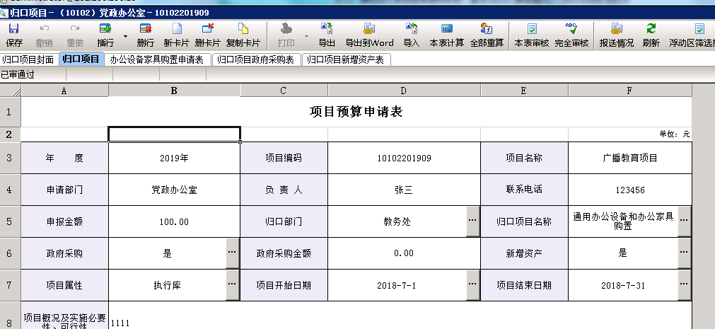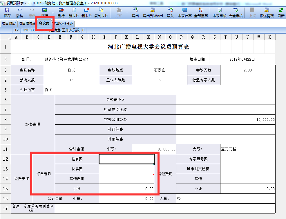 注:“审核金额”为数据上报后主管校领导或财务处进行填写,“批准金额”为上会后学校最终预算批准数。