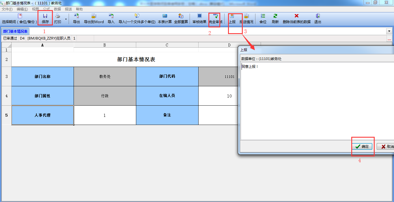 3、 部门报表审批(部门领导操作)
