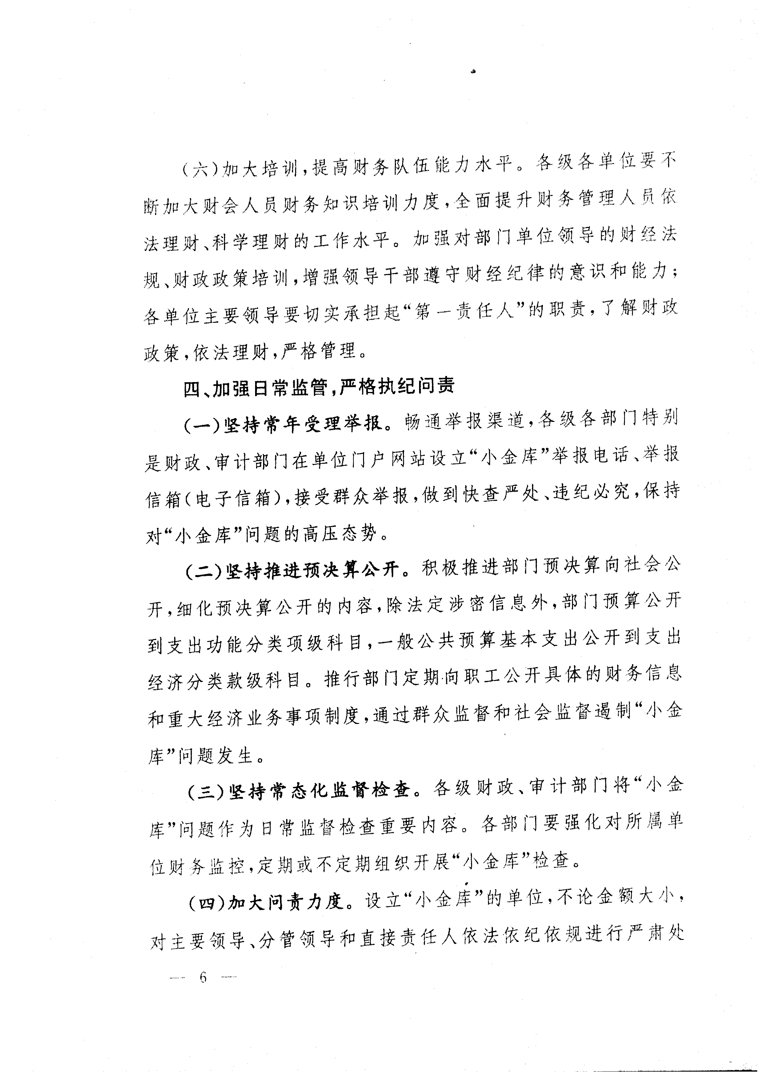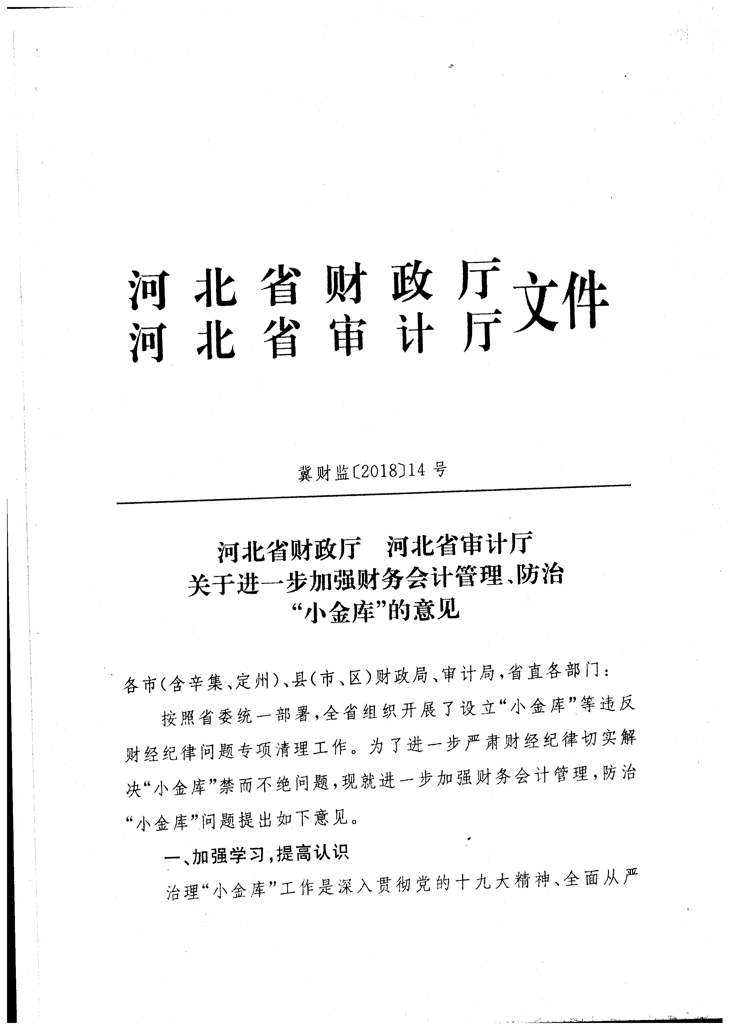关于进一步加强财务会计管理、防治“小金库”的意见